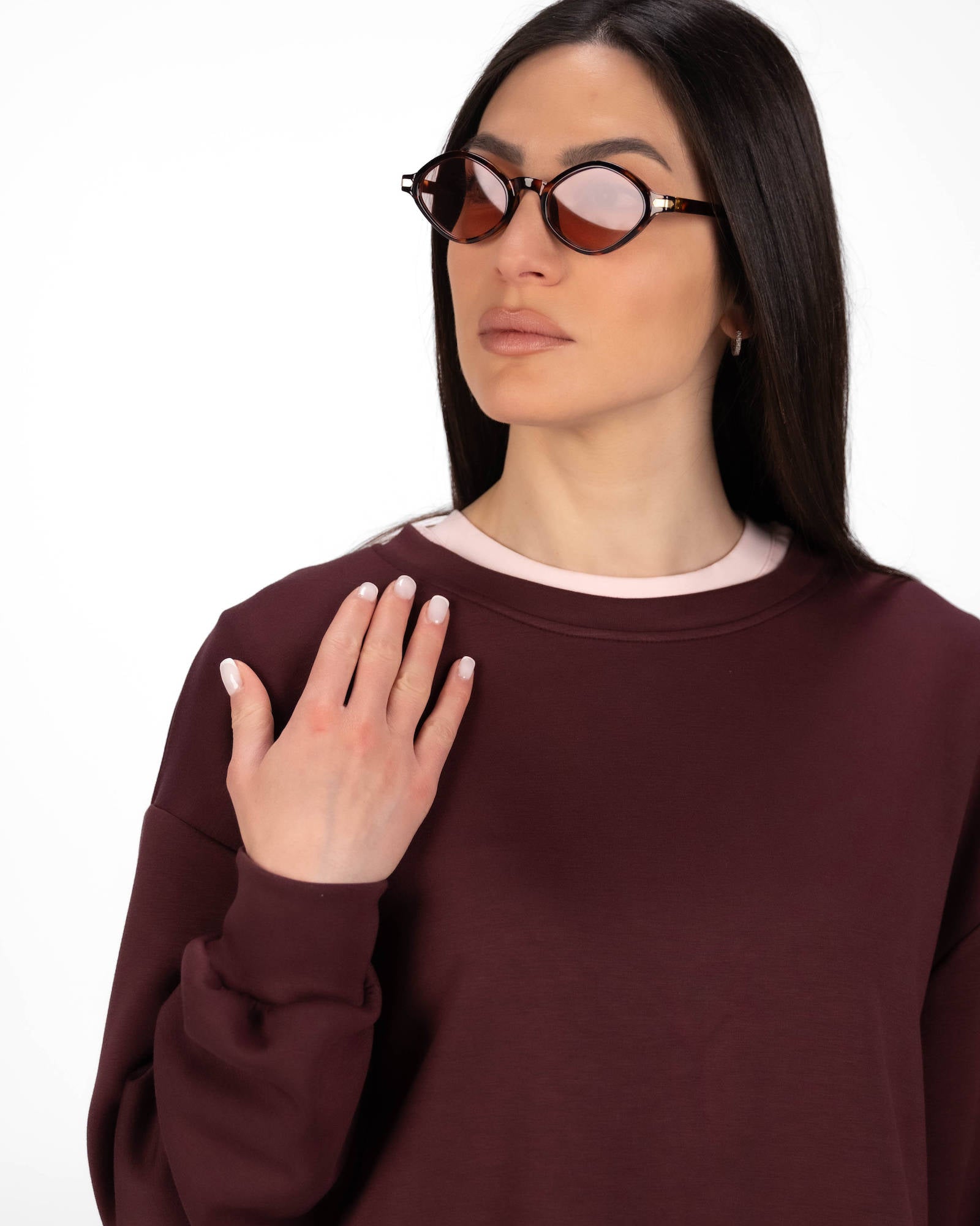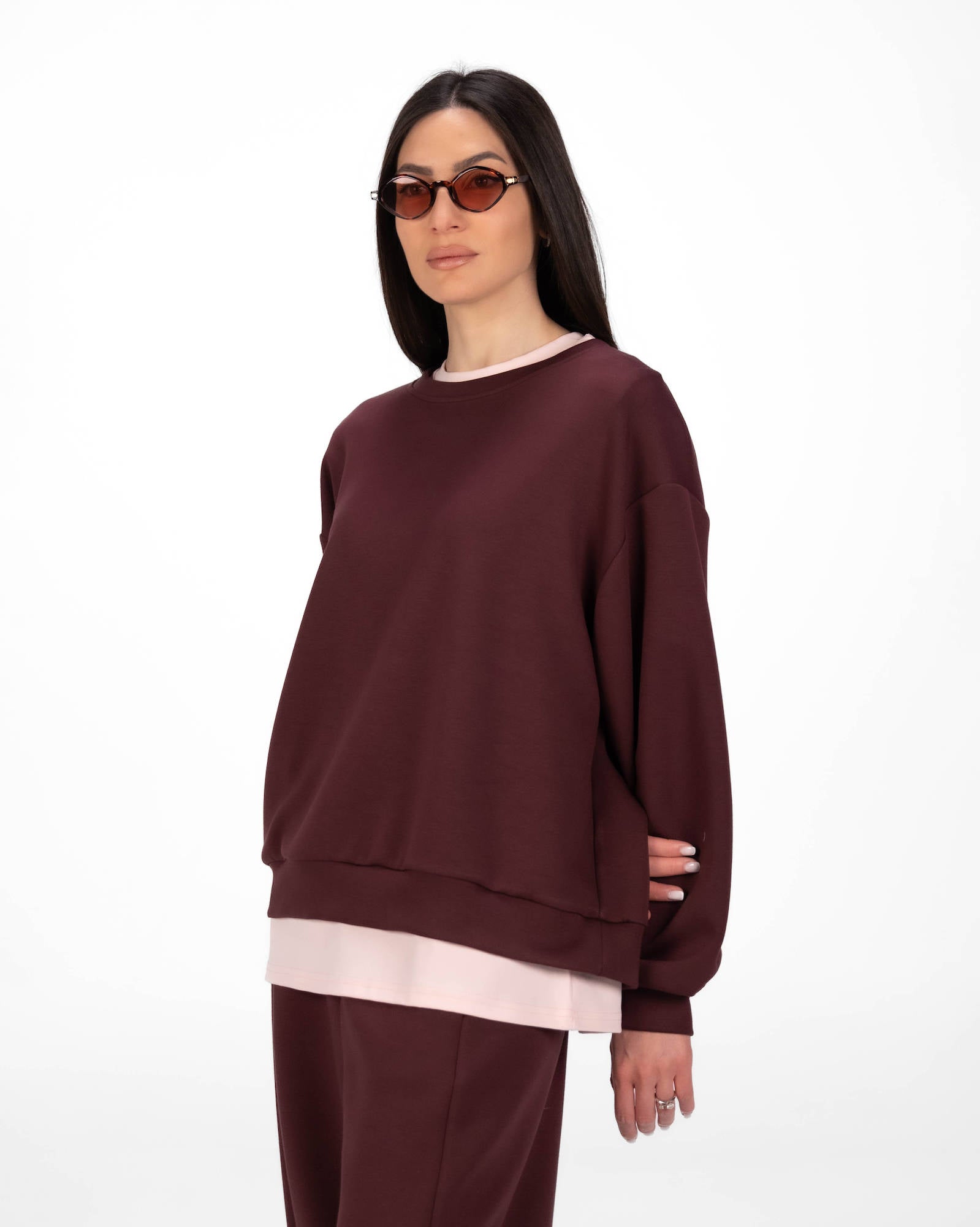 FELPA BARNEY CON ZIP MARRONE ROSA