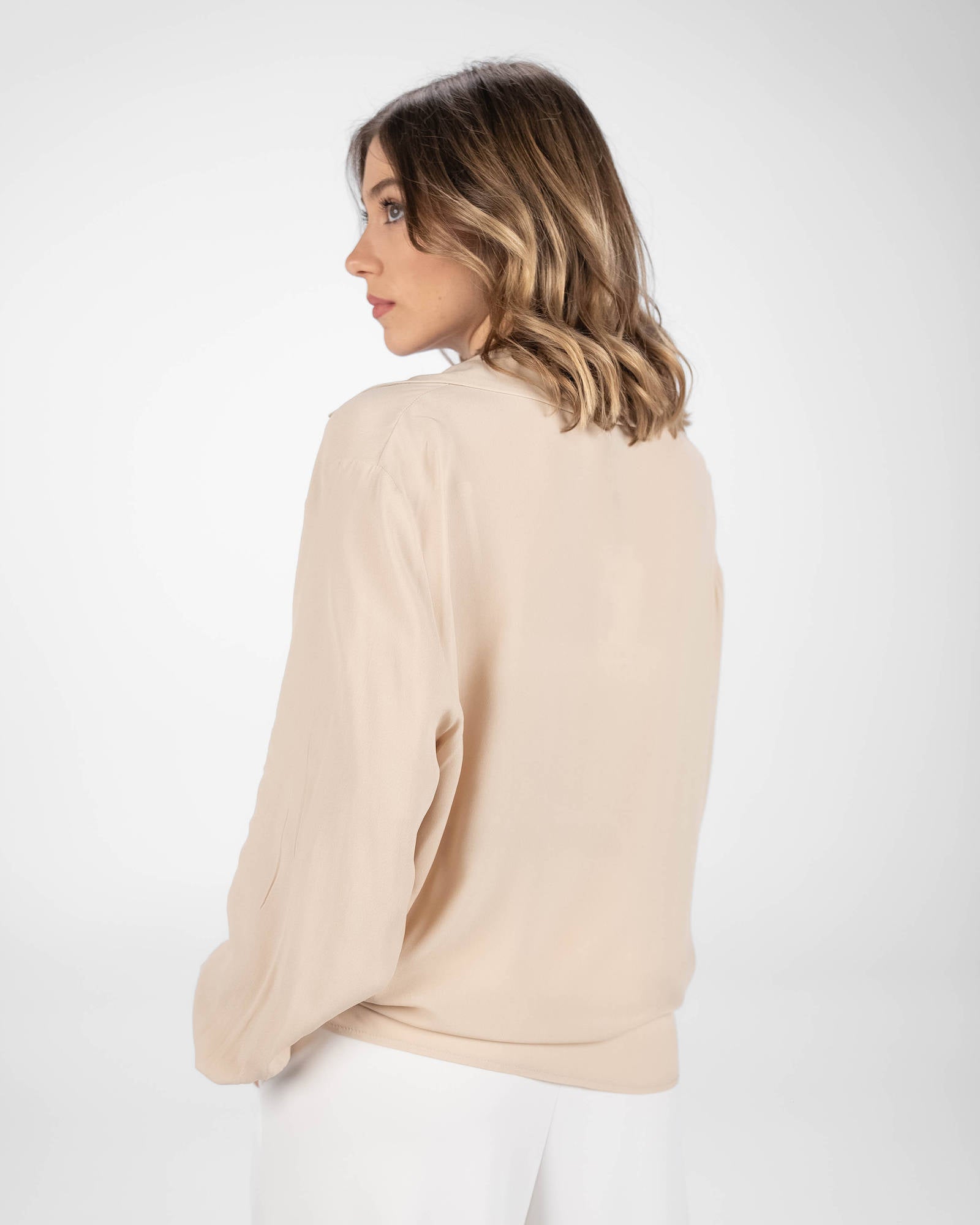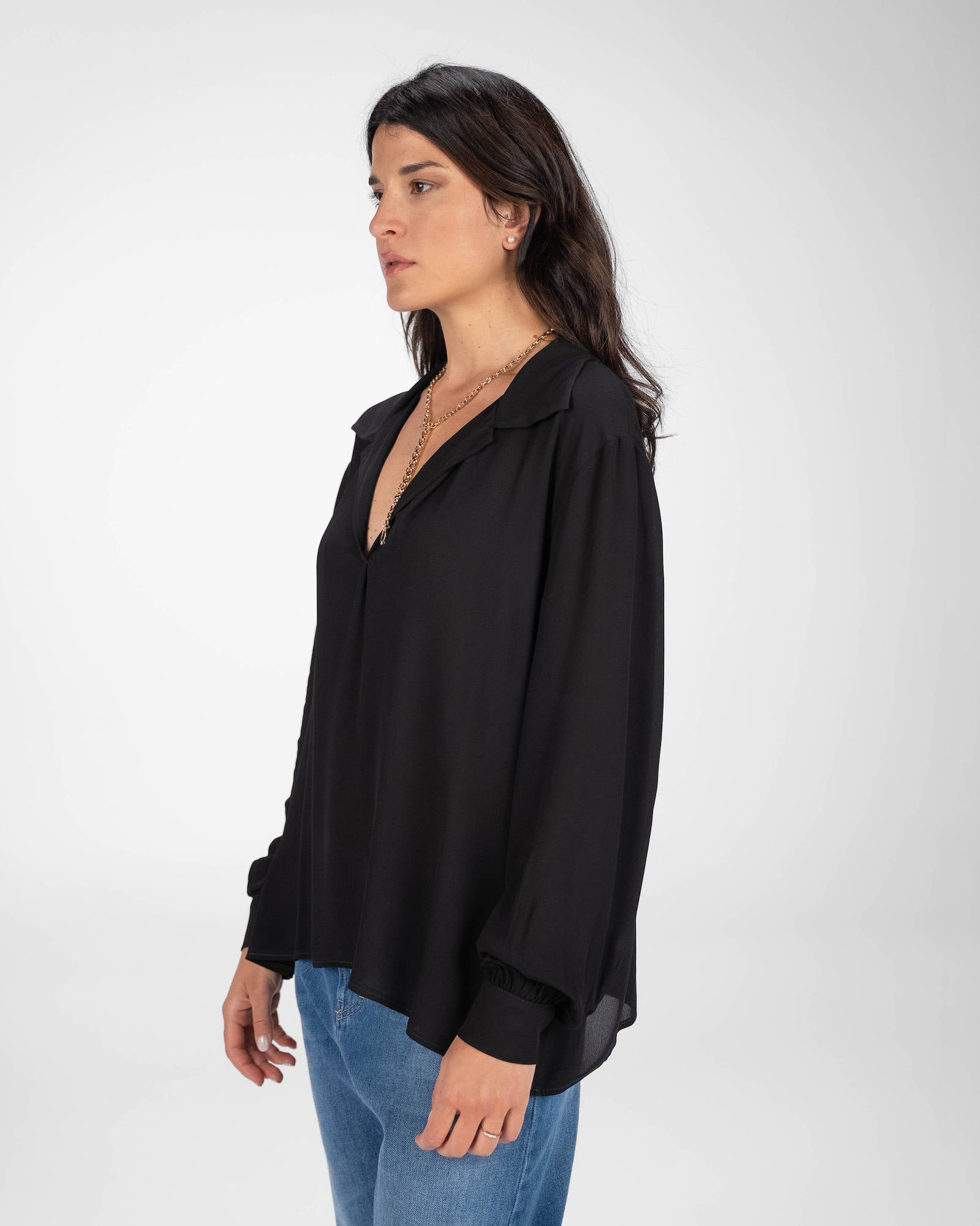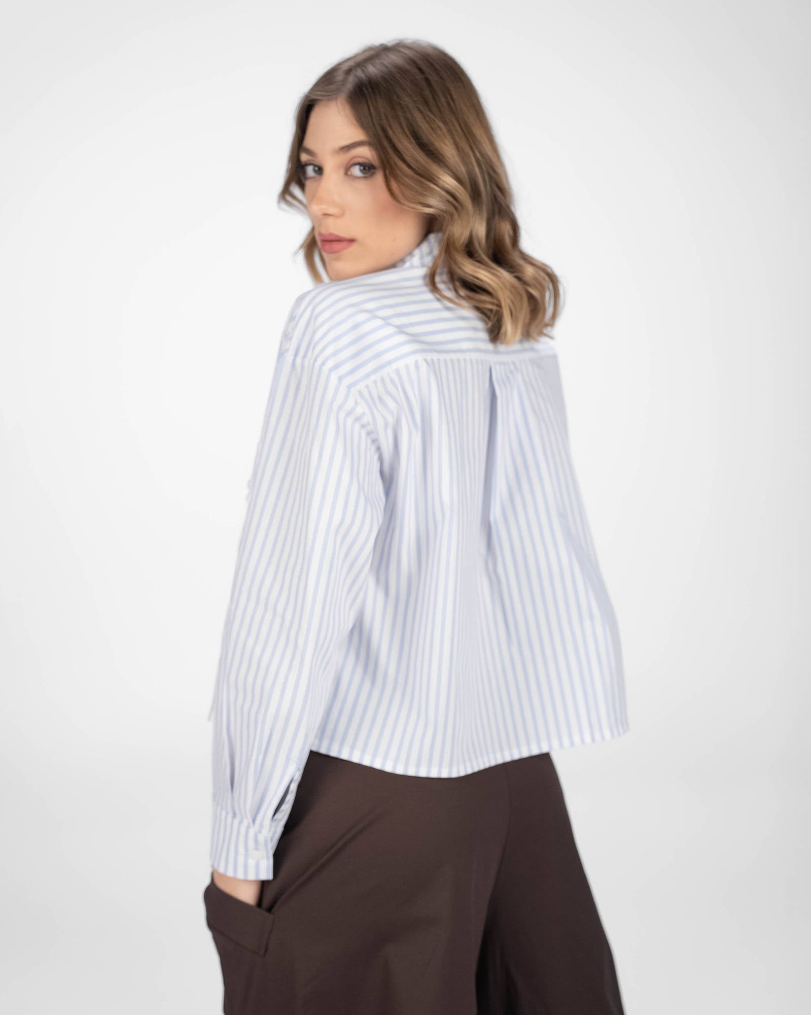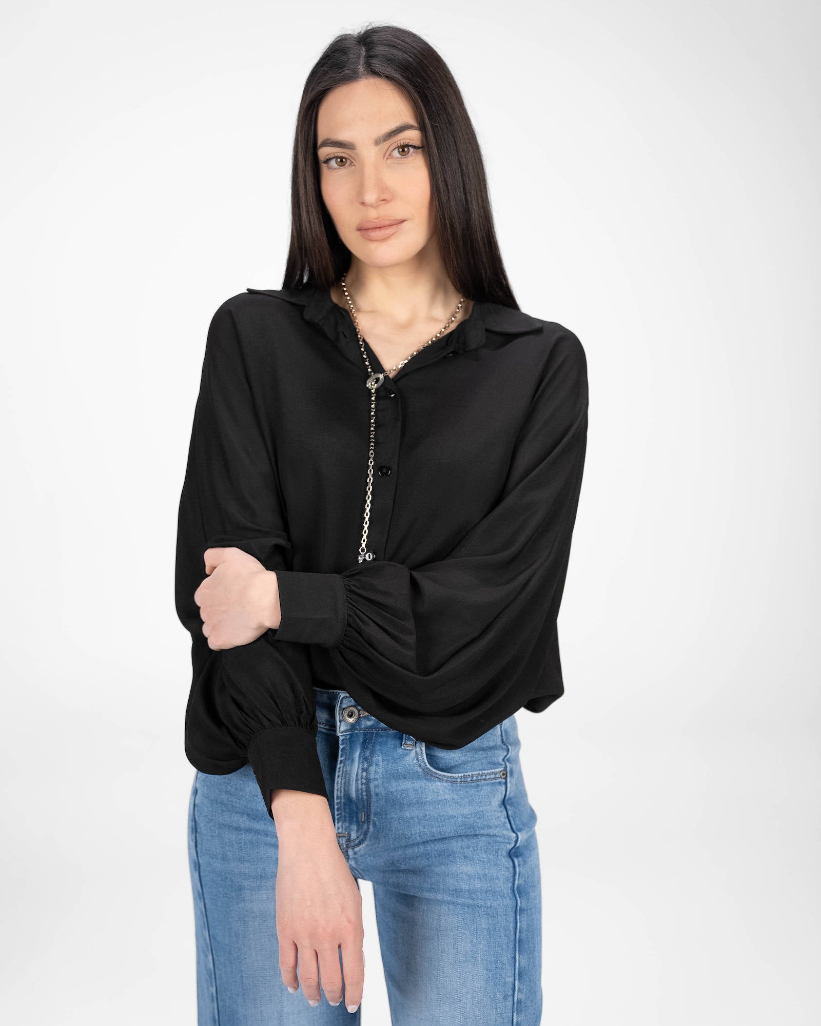 La camicia è uno dei capi più versatili del guardaroba femminile: si abbina a pantaloni, gonne e coordinati, si indossa sotto giacche e blazer e si adatta con facilità a contesti diversi. La collezione propone modelli che spaziano dalla camicia bianca donna — evergreen senza stagione — a versioni in tessuti più ricercati per look da ufficio o occasioni curate.
