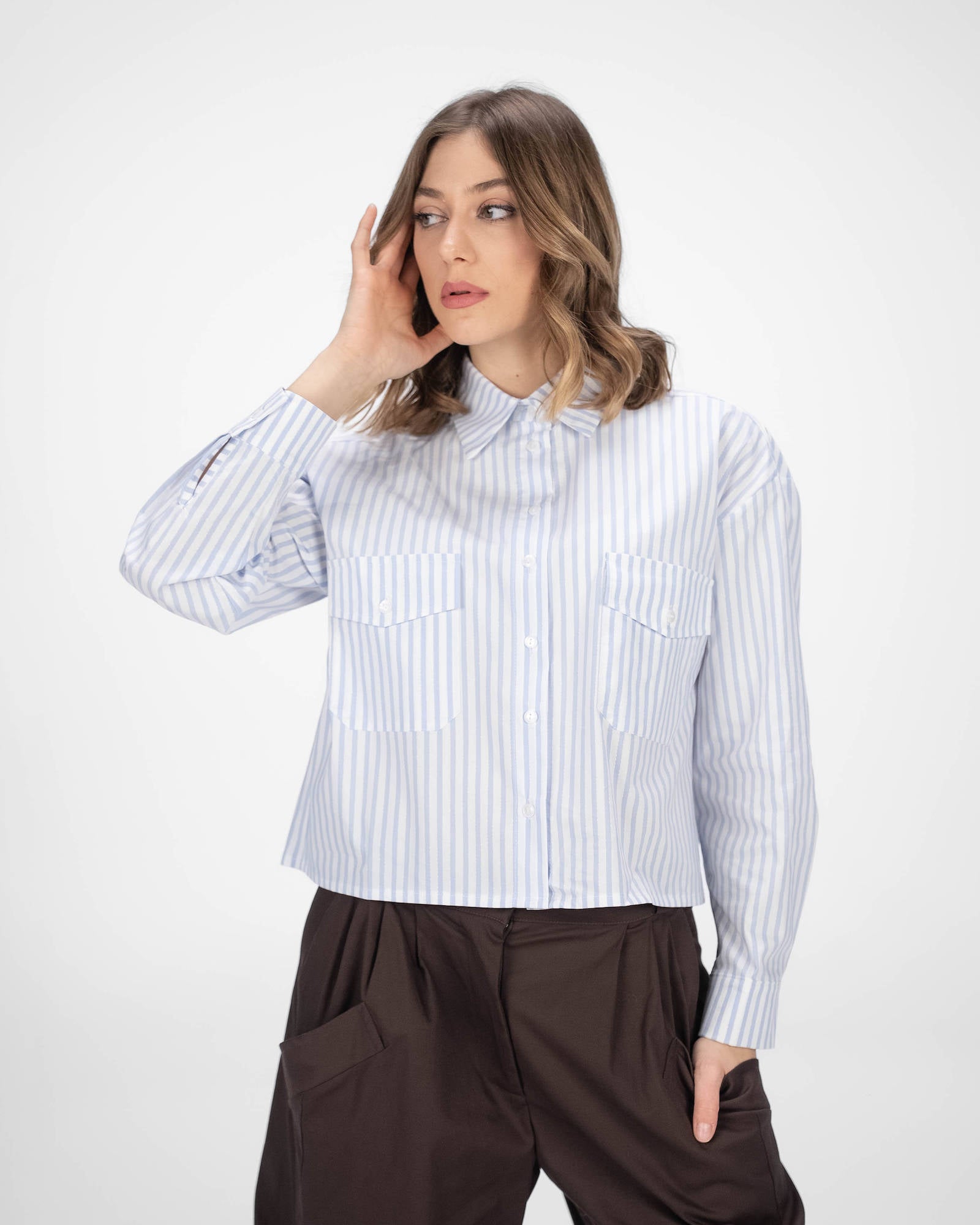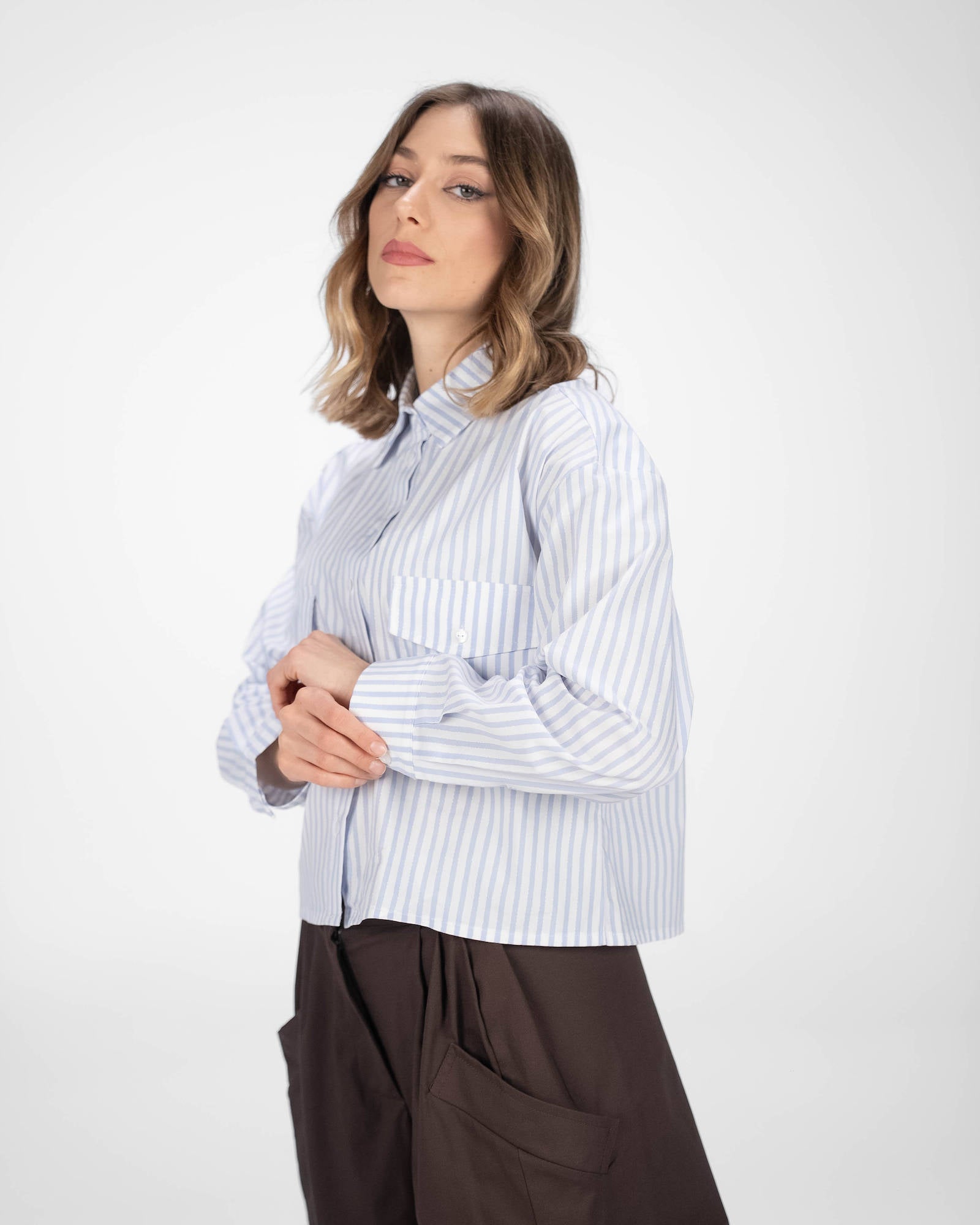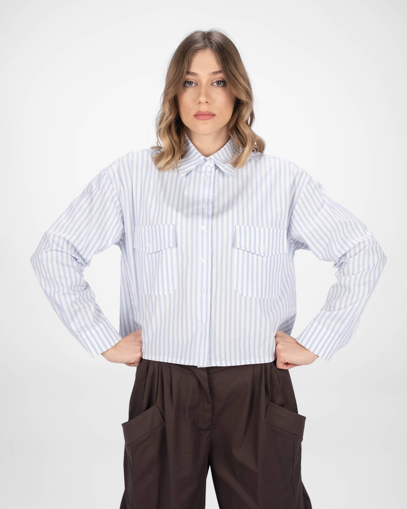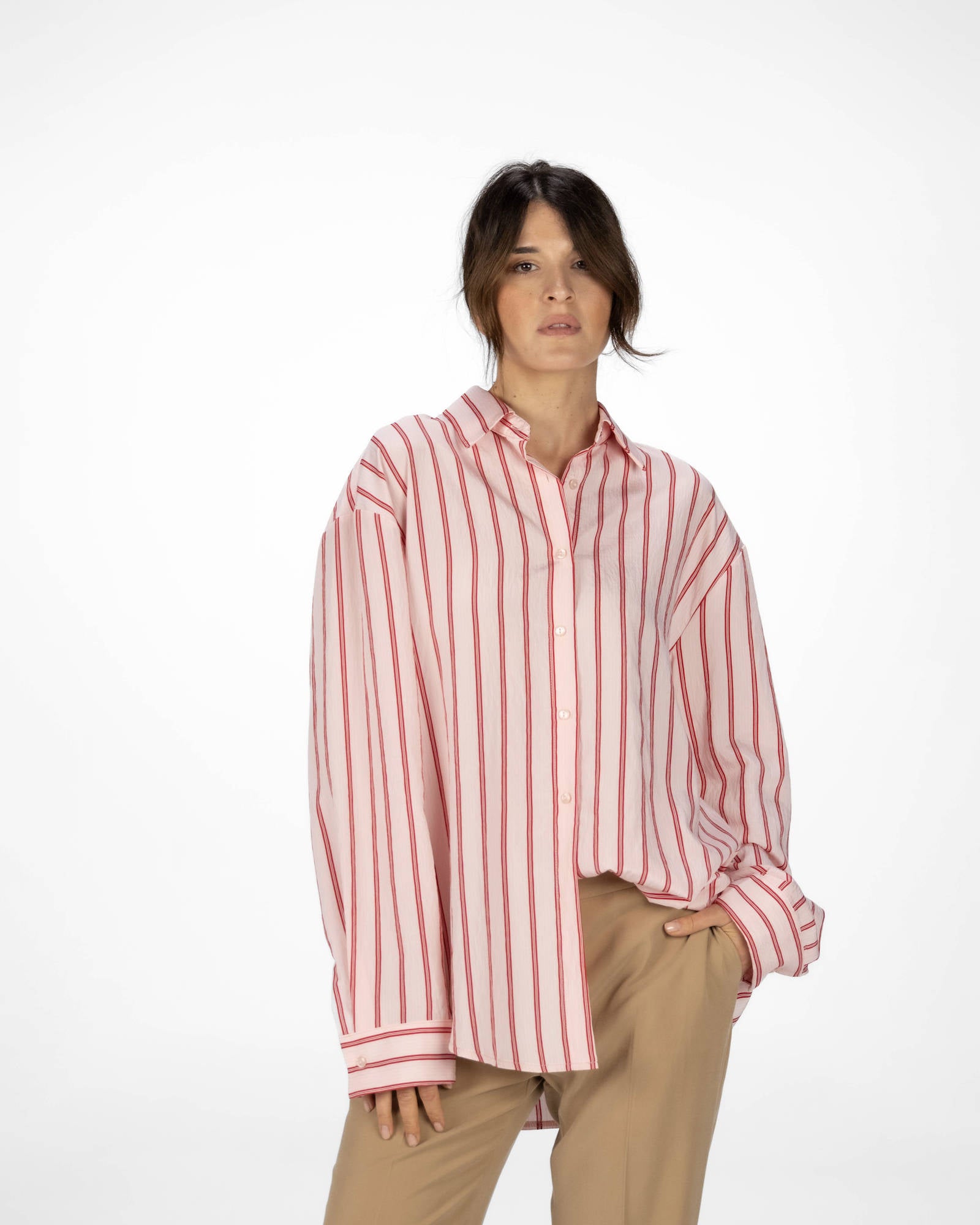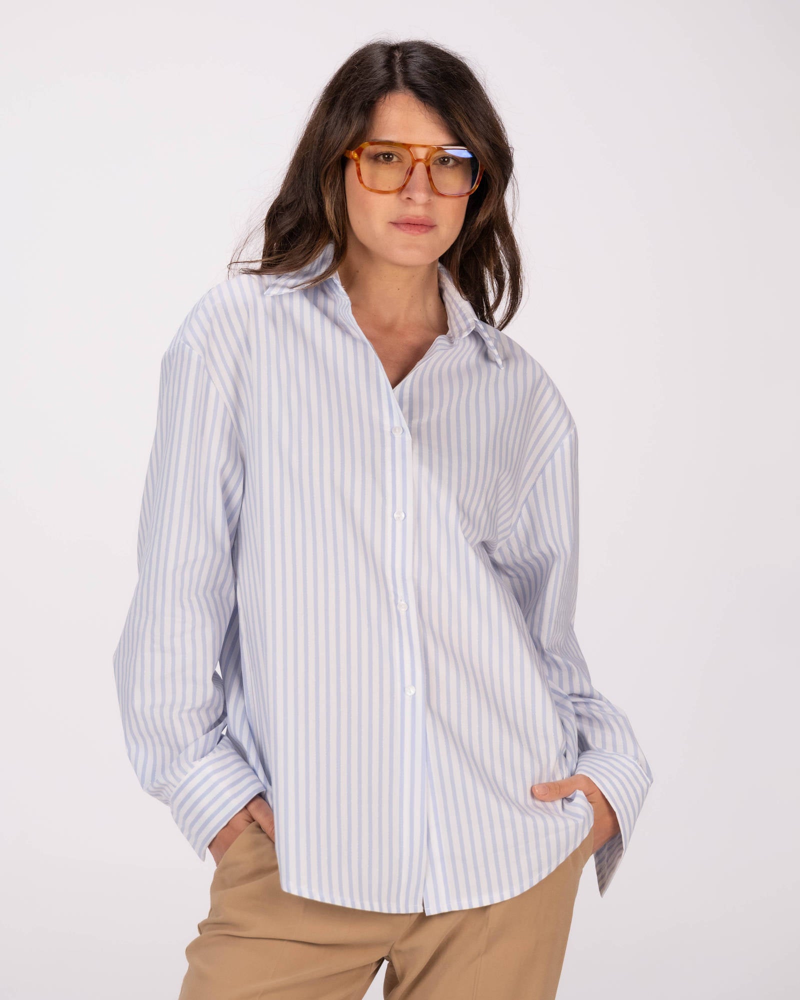 La camicia è uno dei capi più versatili del guardaroba femminile: si abbina a pantaloni, gonne e coordinati, si indossa sotto giacche e blazer e si adatta con facilità a contesti diversi. La collezione propone modelli che spaziano dalla camicia bianca donna — evergreen senza stagione — a versioni in tessuti più ricercati per look da ufficio o occasioni curate.