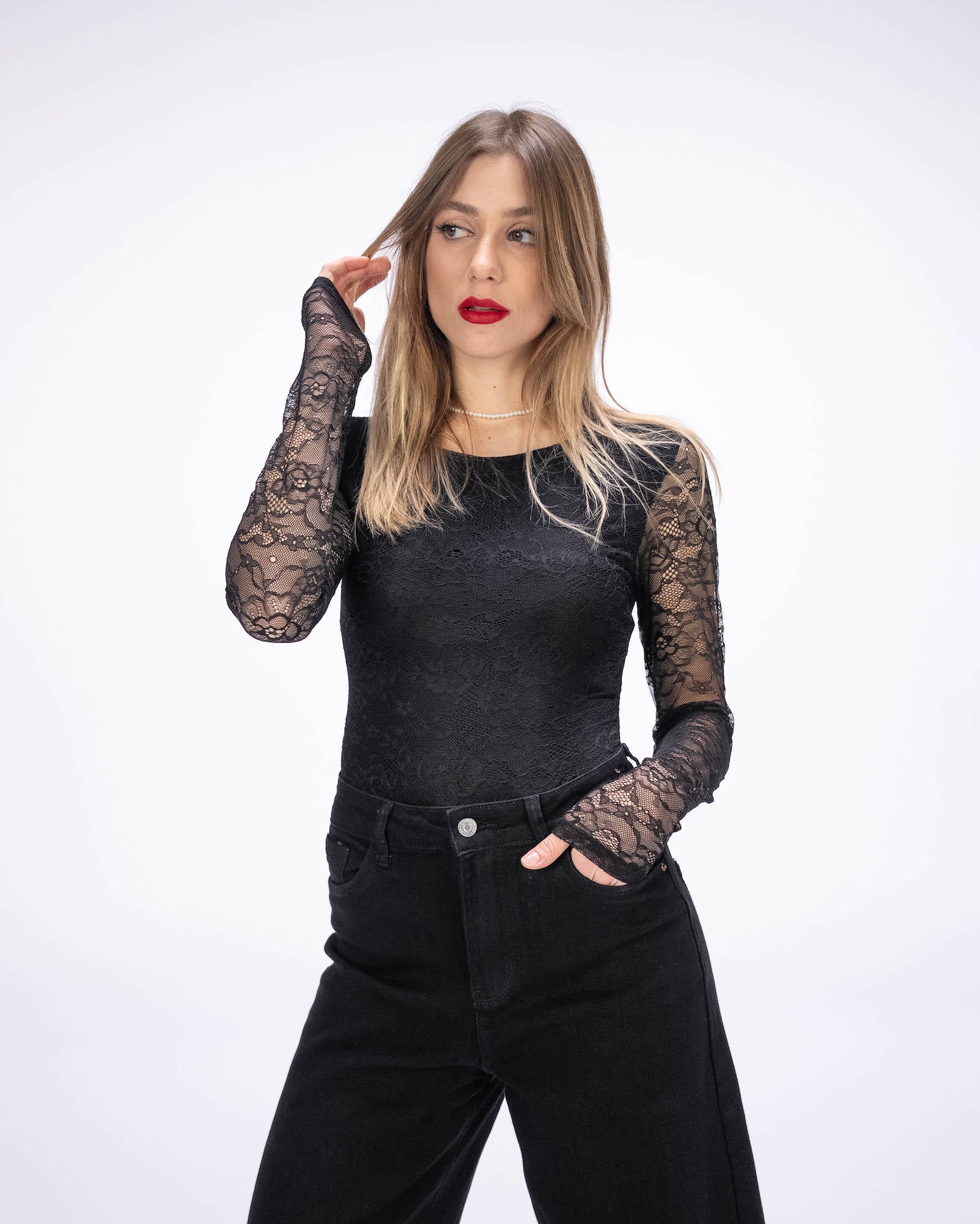 BODY IN PIZZO SHARA PE NERO