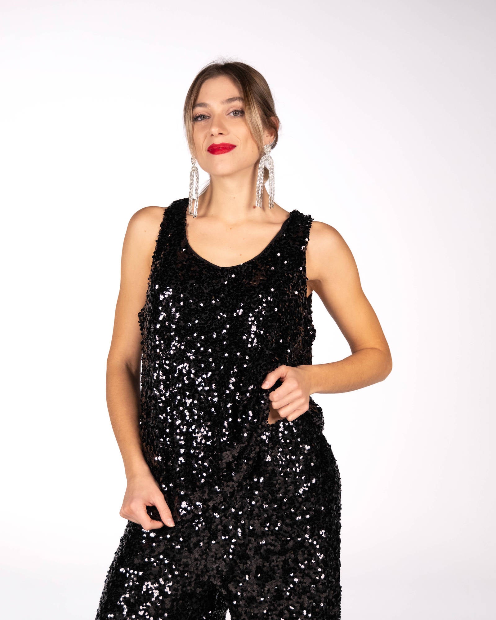 TOP IN PAILLETTES SHIMMER NERO