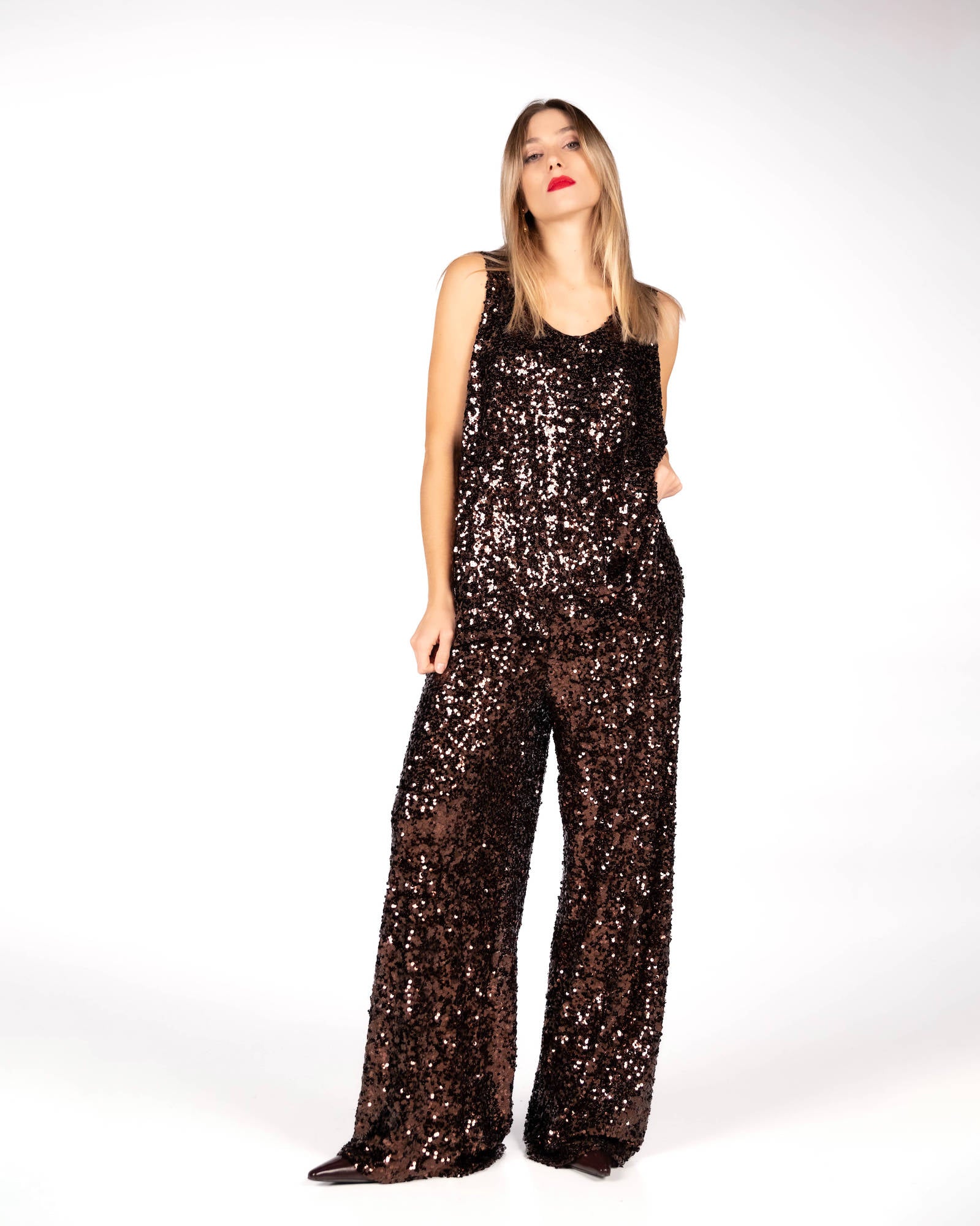 TOP IN PAILLETTES SHIMMER CHOCO