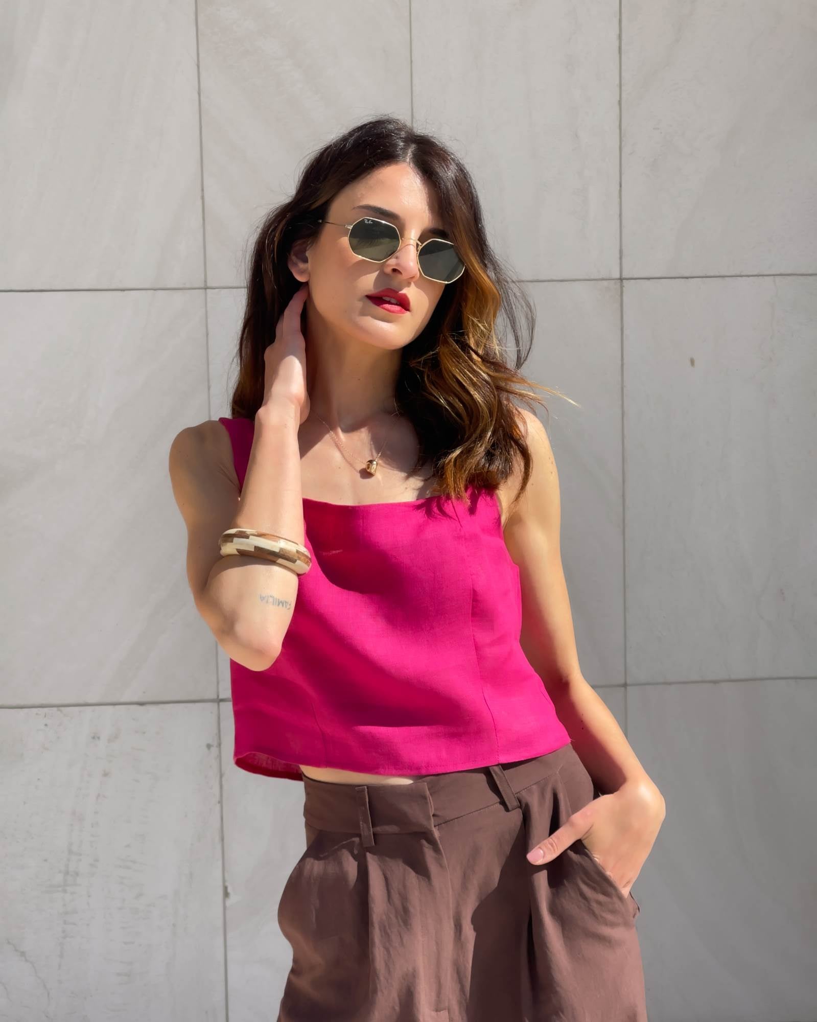 TOP IN LINO PSL STUDIO FUXIA