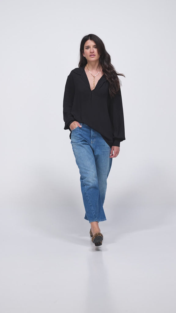 CAMICIA BLUSA IN GEORGETTE DI VISCOSA CON SCOLLO A CAMICIA, LINEA MORBIDA, MANICA CON POLSINO.