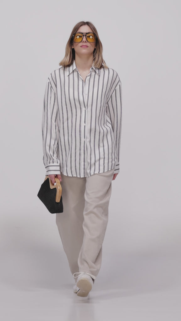 CAMICIA OVER CON FALLONE DIETRO E SPALLA SCESA. LEGGERMENTE PIU' LUNGA DIETRO.