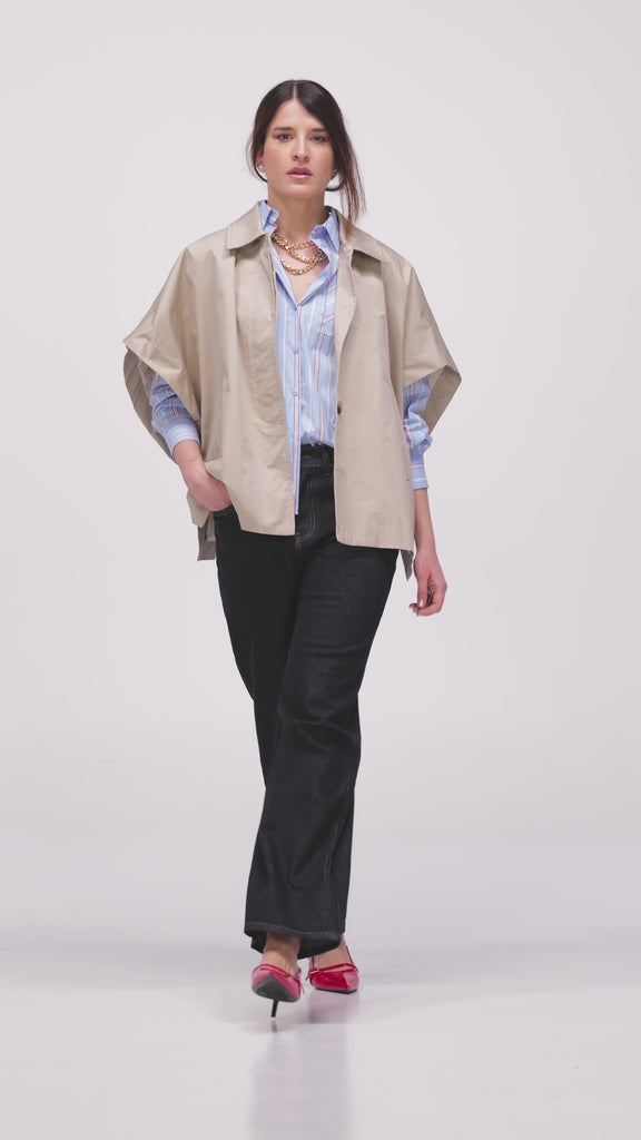 CAMICIA IN COTONE, MODELLO SCATOLA CON TASCHINO LATERALE, SPALLA LEGGERMENTE SCESA. BOTTONCINO LATERALE PER DOPPIA CHIUSURA. Prodotto PSLove Made in Italy