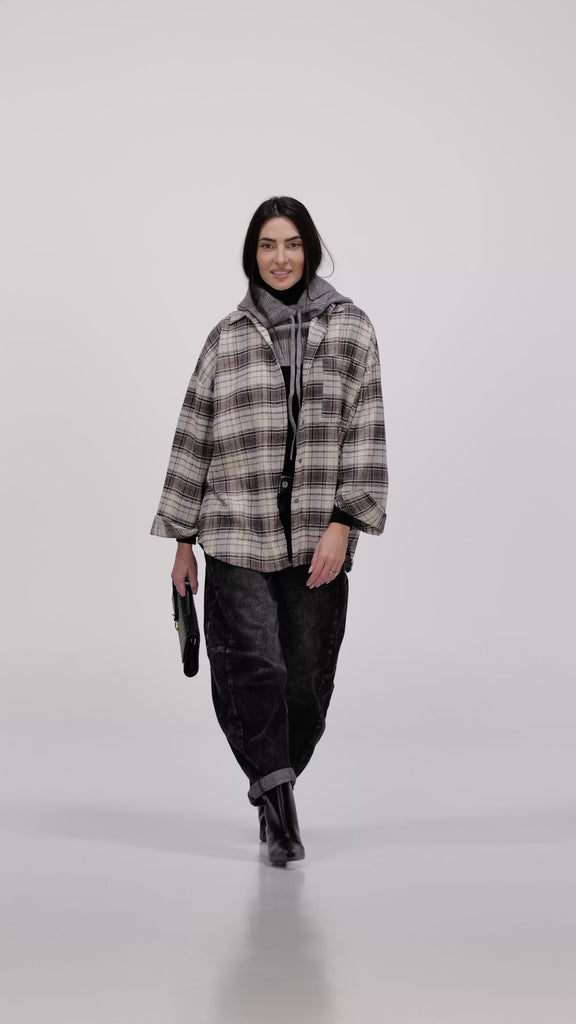 CAMICIA CHECK IN CALDO COTONE CON TASCHINO LATERALE A VISTA.