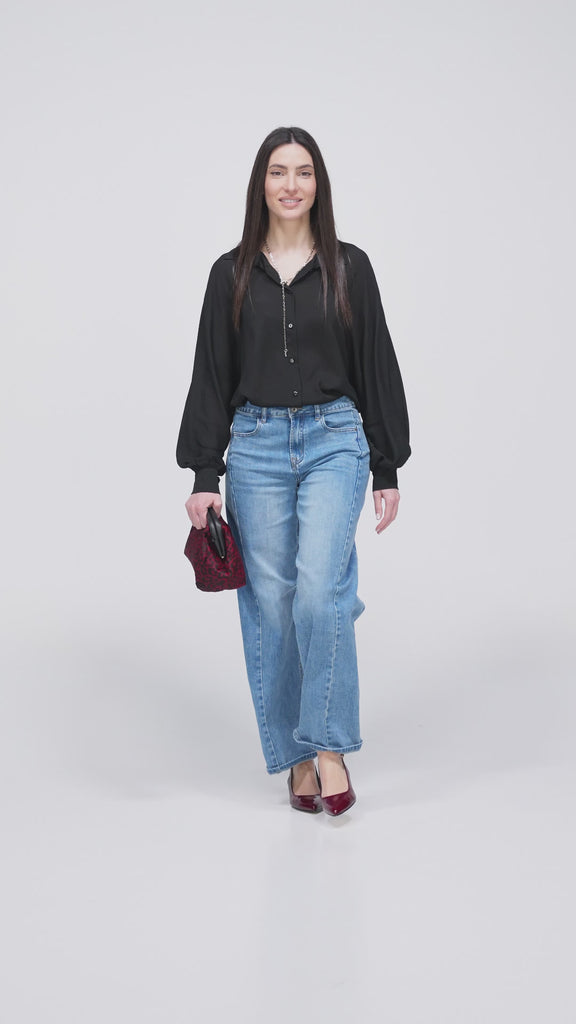 CAMICIA IN CHIFFON DI VISCOSA, MANICA A PIPISTRELLO, POLSINO CON BOTTONE. Prodotto PSLove Made in Italy