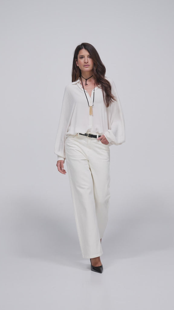CAMICIA IN CHIFFON DI VISCOSA, MANICA A PIPISTRELLO, POLSINO CON BOTTONE. Prodotto PSLove Made in Italy