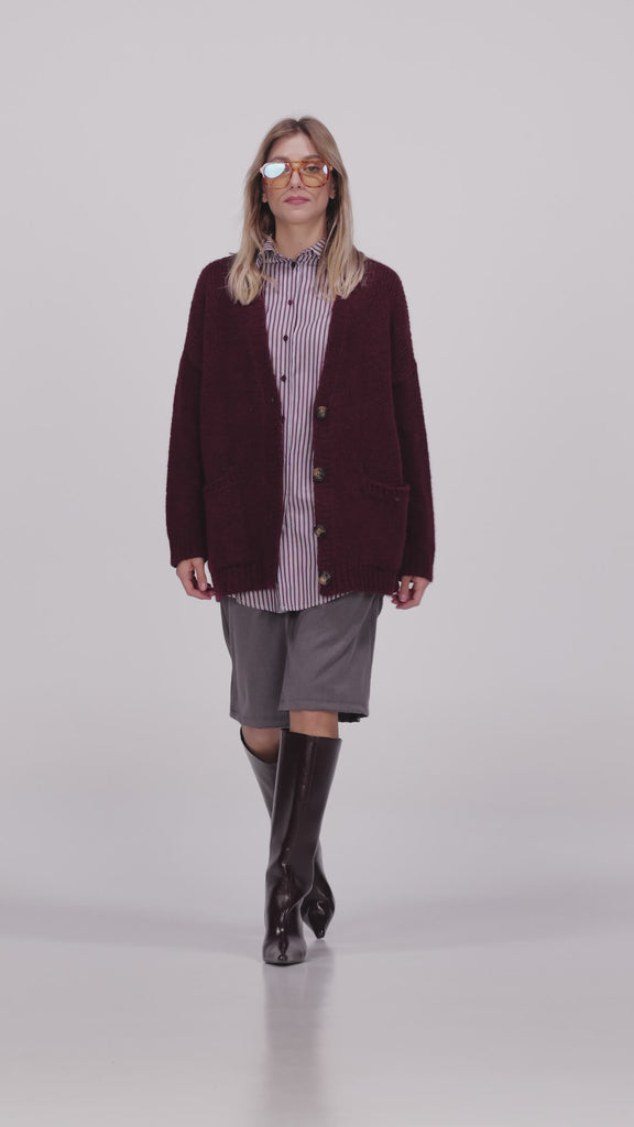 CARDIGAN IN MAGLIA OVER, SPALLA MOLTO SCESA, TASCHE FRONTALI