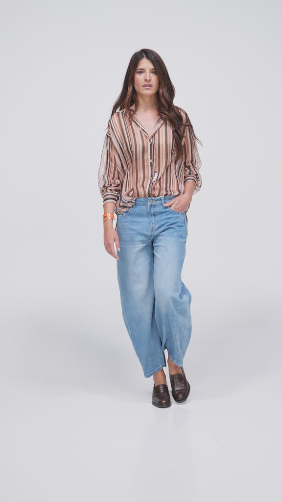 DENIM MODELLO OVETTO CON VITA MEDIA E GAMBA AMPIA. LAVAGGIO COLORE CHIARO Prodotto Selezionato Made in PRC