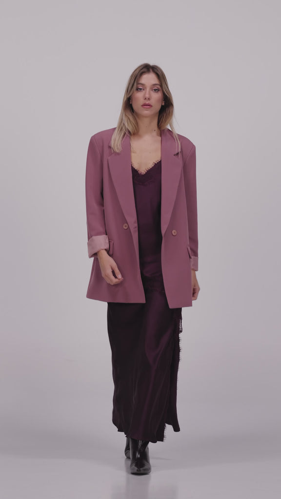 TORNA LA GIACCA "MUST HAVE" DELLA COLLEZIONE PSLOVE, QUELLA CHE NON PUO' MANCARE NEL TUO ARMADIO. BLAZER OVERSIZE A DOPPIO PETTO CON BOTTONI TONO SU TONO, TASCHE DAVANTI CON PATTINA, FODERATA IN TINTA. ABBINALO AL PANTALONE ANDREA PER UN TOTAL LOOK