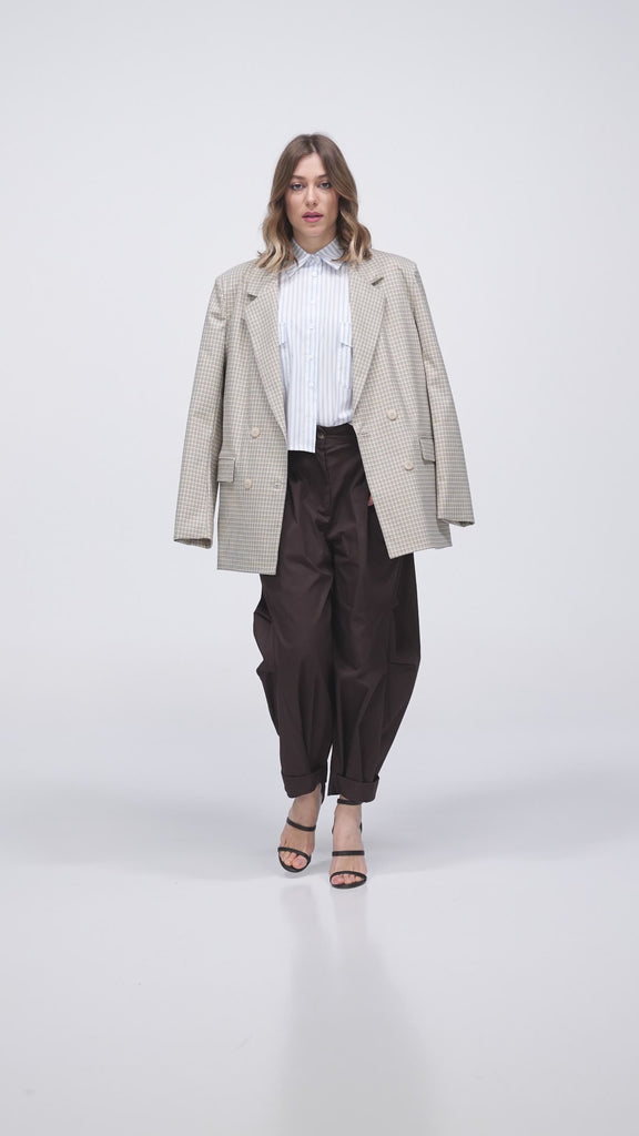 PANTALONE GAUCHO CON TASCONI, GAMBA AMPIA, CAVIGLIA REGOLABILE CON BOTTONI AUTOMATICI, PASSANTI PER CINTURA. VESTIBILITA' RIDOTTA. VESTE MAX TAGLIA 46