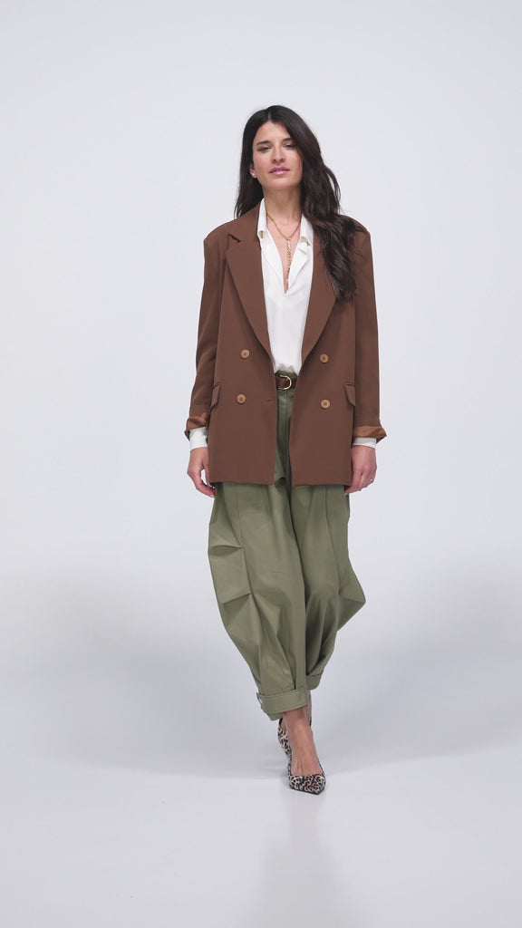 PANTALONE GAUCHO CON TASCONI, GAMBA AMPIA, CAVIGLIA REGOLABILE CON BOTTONI AUTOMATICI, PASSANTI PER CINTURA. VESTIBILITA' RIDOTTA. VESTE MAX TAGLIA 46