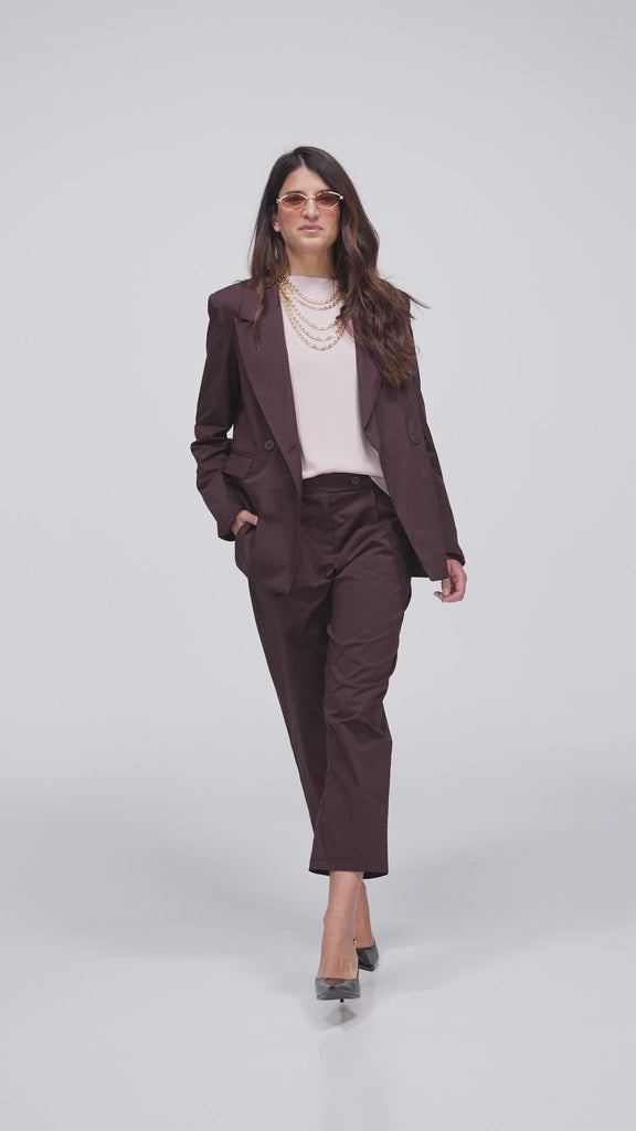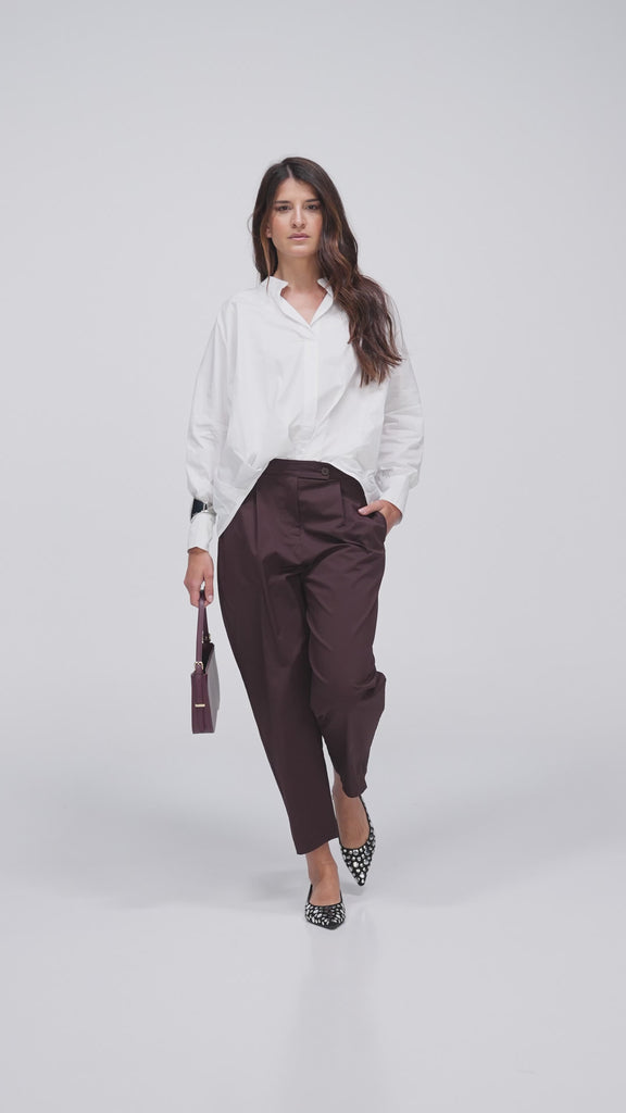 PANTALONE PRIMAVERILE OVETTO CON PINCES, LUNGHEZZA ALLA CAVIGLIA, IN TESSUTO TECNICO DI COTONE E NYLON MORBIDO E CONFORTEVOLE. PUOI ABBINARLO ALLA GIACCA MAVERICK PER UN TOTAL LOOK. Prodotto PSlove Made in Italy