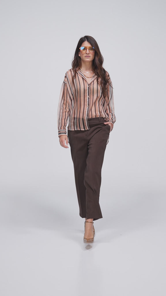 PANTALONE IN VISCOSA A SIGARETTA CON PIEGA, TASCHE OBLIQUE, ELASTICO NELLA PARTE POSTERIORE. Prodotto PSLove Made in Italy