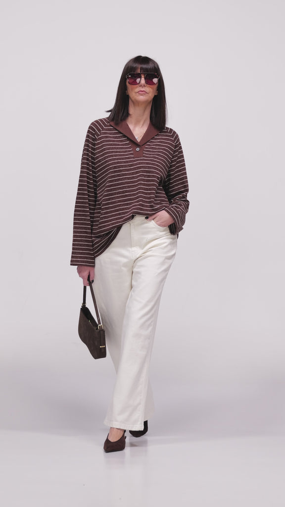 POLO OVER IN TESSUTO FIAMMATO A RIGHE CON COLLETTO IN TINTA. Prodotto selezionato Made in PRC