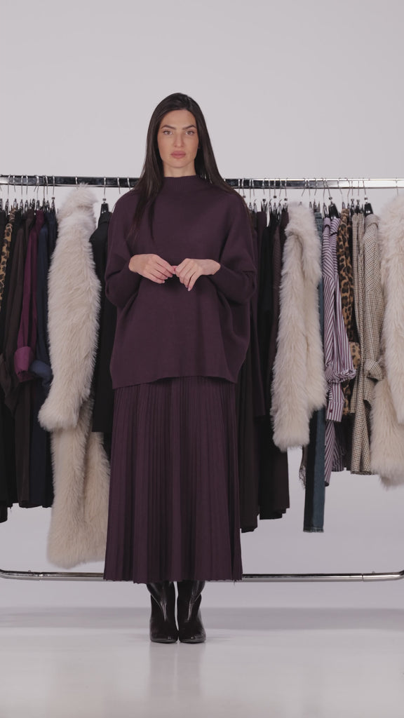 PULL IN MORBIDA MAGLIA IN MISTO VISCOSA CON COLLO ALTO, MODELLO SCATOLINA. IL COLLO A COSTE RIPRENDE IL MOTIVO DELLA GONNA BERGEN, SE VUOI OPTARE PER UN TOTAL LOOK
