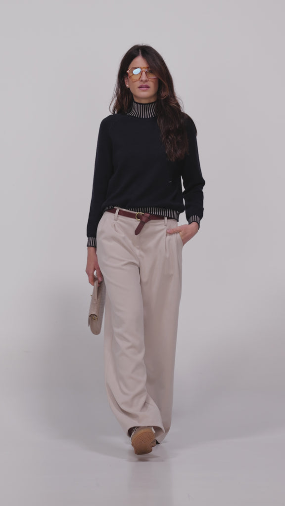 PULL IN VISCOSA CALDA COLLO ALTO A COSTINA CON COLORI A CONTRASTO SU COLLO, POLSINO E IN FONDO.