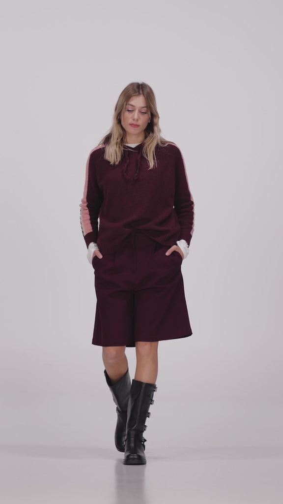 MORBIDO PULL CON MANICHE RAGLAN, CAPPUCCIO CON COULISSE, BANDE LATERALI A CONTRASTO SU MANICHE.